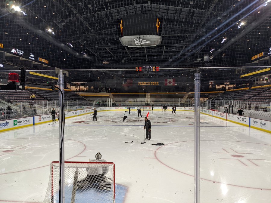 You actually have to enter through one of the rinks bench doors to get inside it as Mailly-Pressoir. Mullett Arena is the temporary solution the Coyotes came up with essentially playing in a warehouse outfitted to be a college arena because A they were booted out of the arena. Having opened in 1898 the Arena was considered one of the worlds first great hockey rinks.