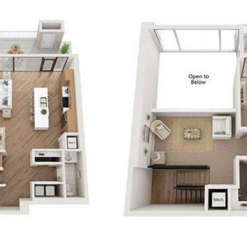 . Floor-to-ceiling windows with solar shades offer light. Choose from one- two- or three-bedroom apartment homes with townhome loft and penthouse options. Lease Now Schedule a Tour.